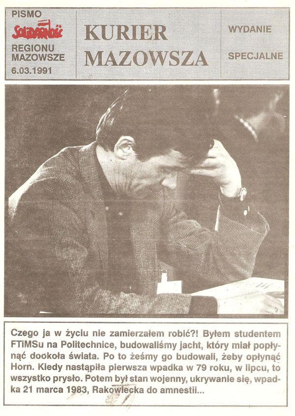 Ale ciągle czuł się za nich odpowiedzialny. Mówił “Gazecie”: – Żyliśmy z czterokrotną aktywnością. Wielu zniszczyło sobie zdrowie, zrujnowało życie rodzinne. Wielu przypłaciło karierami naukowymi – nie ukończyło studiów czy doktoratów. Nie przez represje polityczne, bo te dotknęły zaledwie 5 proc. podziemia, ale przez całkowite pochłonięcie. Ktoś, kto przez osiem lat rozrzucał ulotki, dla kogo normalna praca była tylko koniecznym dodatkiem do życia, jest teraz okaleczony. Wraca z trudem do życia, jak po długiej chorobie… Wydawało się książki, ale nie miało się czasu ich czytać. Człowiek się nie rozwijał, tylko walczył… Uczucie niepewności, przekonanie, że się jest niepotrzebnym, bo zrobiło się swoje, jest udziałem prawie wszystkich. Podziemie to kilka tysięcy osób. Nie można im powiedzieć: dziękuję, chłopcy, umyjcie ręce po farbie, jesteście wolni.
